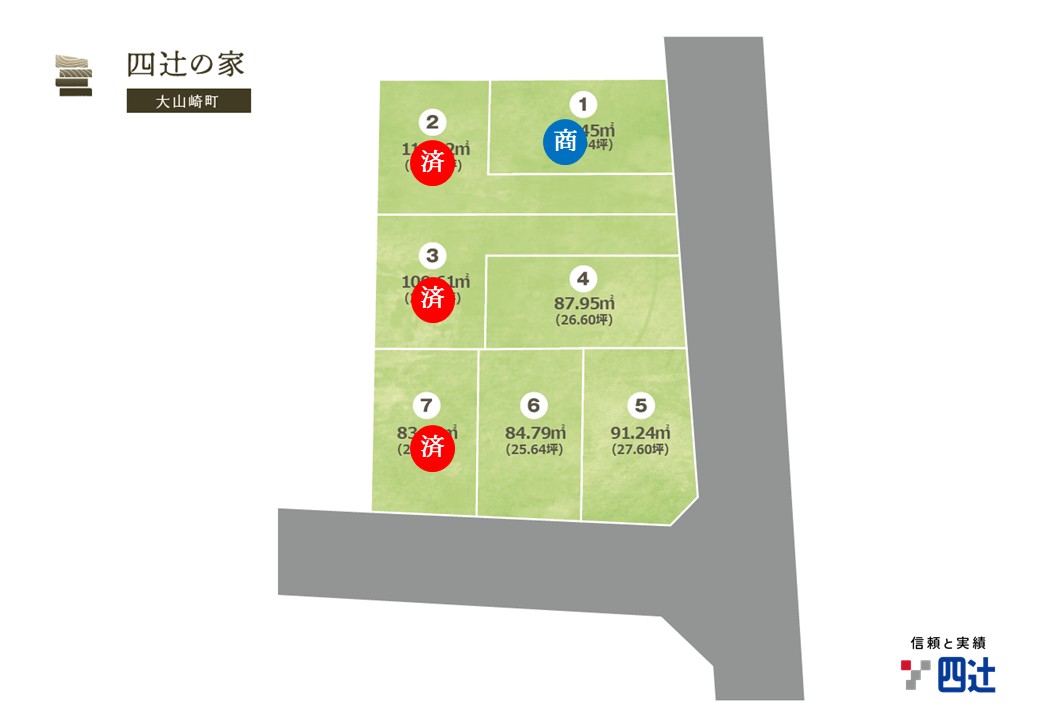 各区画の形が整っているため、敷地を無駄なく使えて間取りや庭の配置も自由度高く理想の住まいを実現しやすいです。