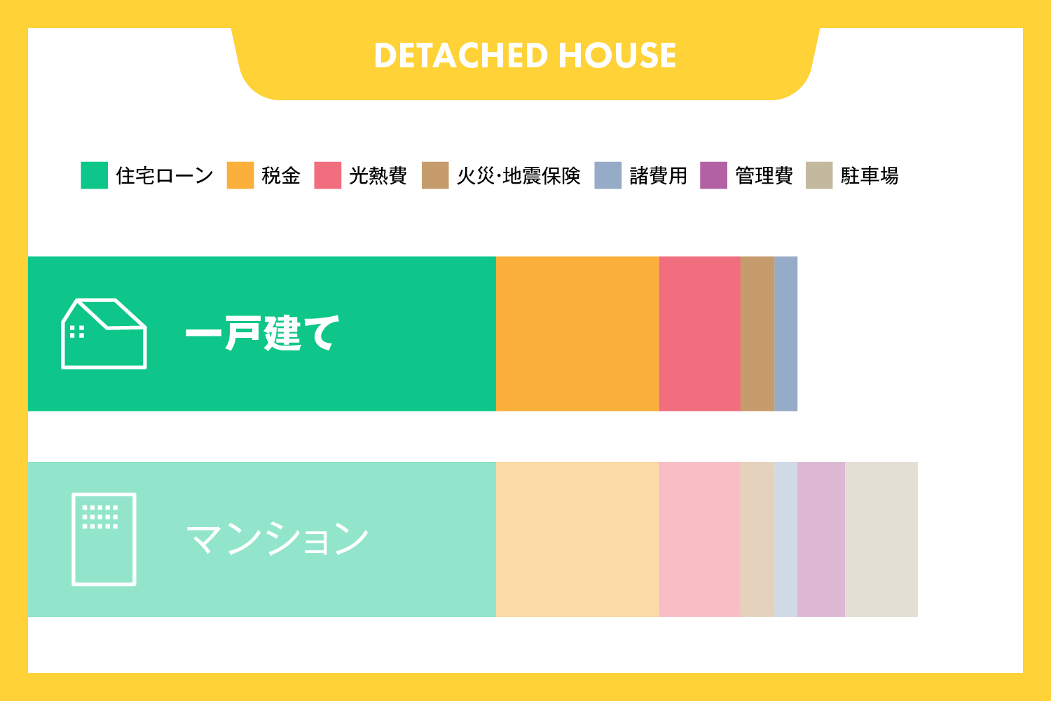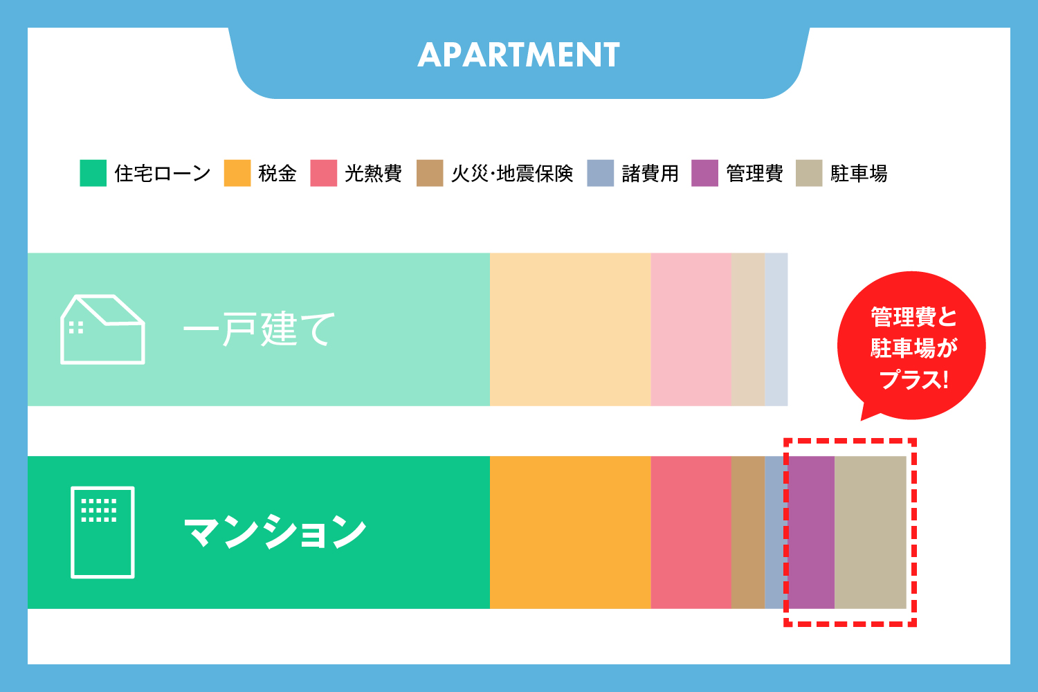 住宅ローンに加えて、光熱費や管理費、修繕積立金、駐車場代が基本的にはかかってくる。