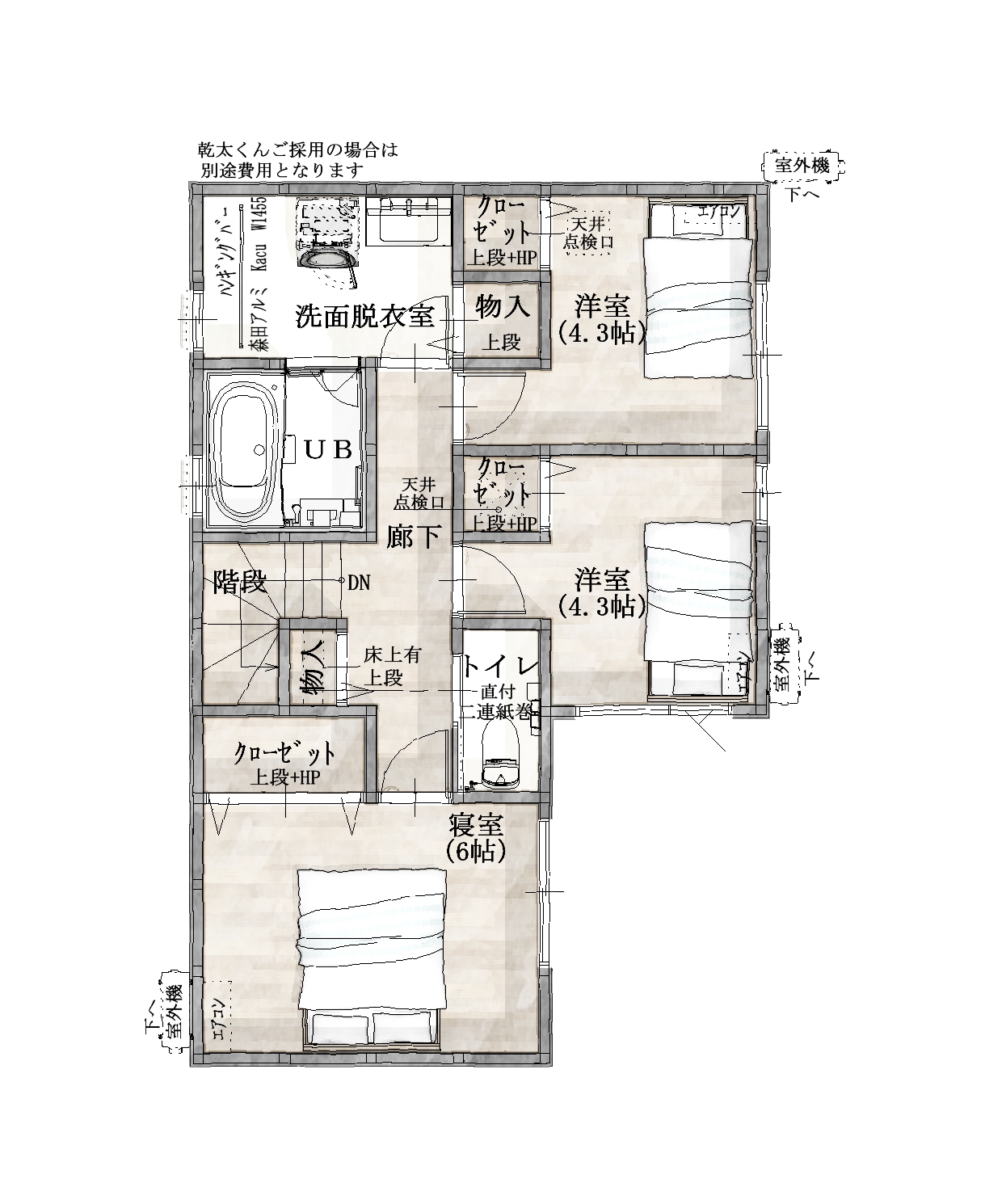 天井高が2500㎝あるのでお部屋をよりすっきりと広く感じさせてくれます。