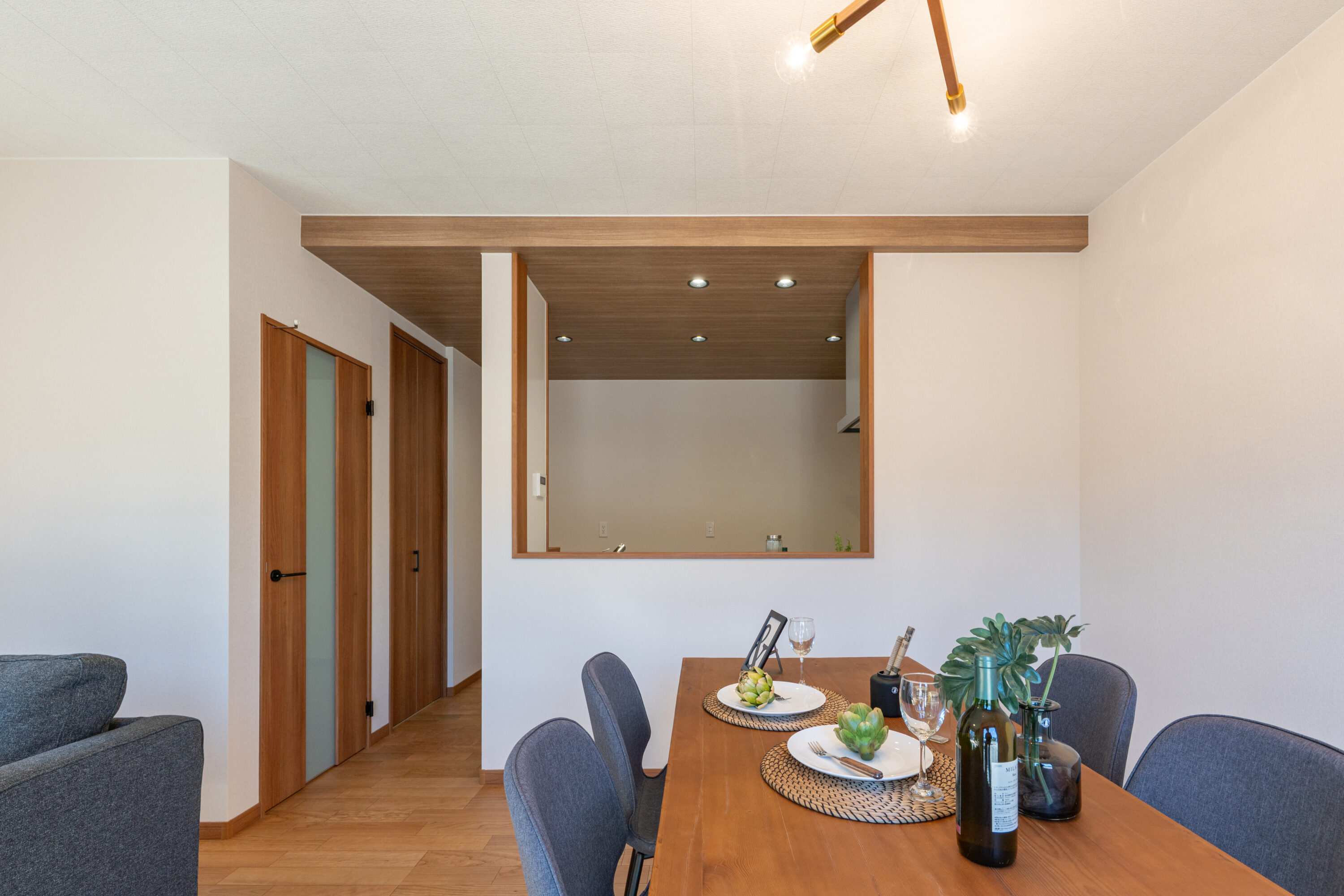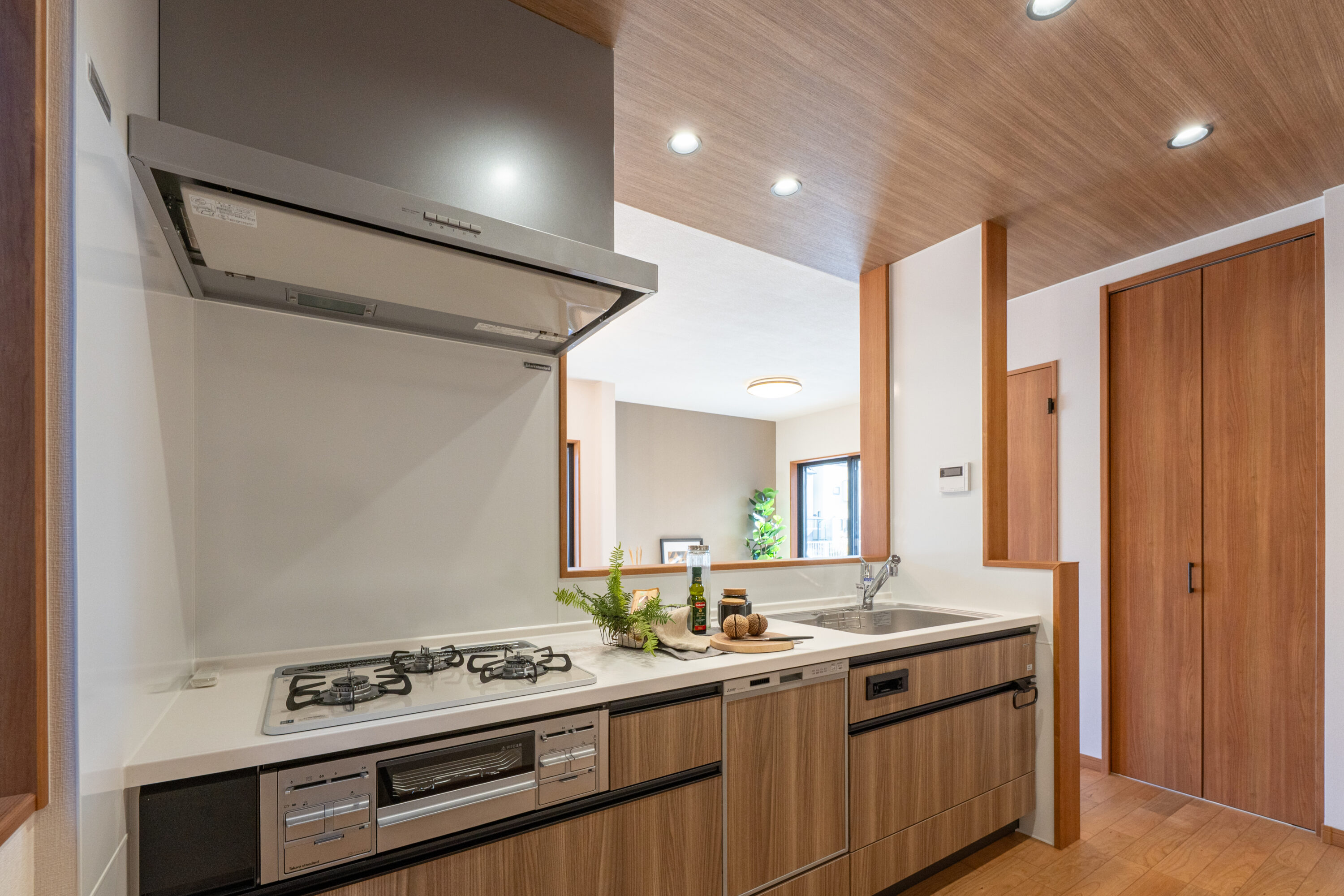 キッチンの木目天井がアクセントとなり空間に彩を演出してくれます。