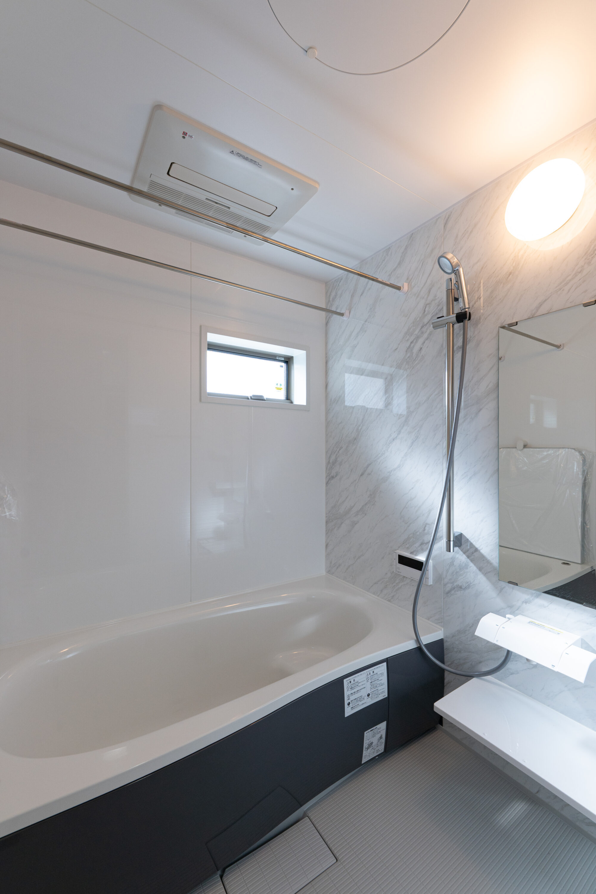 大理石調の落ち着いた浴室でゆっくりとくつろげます。