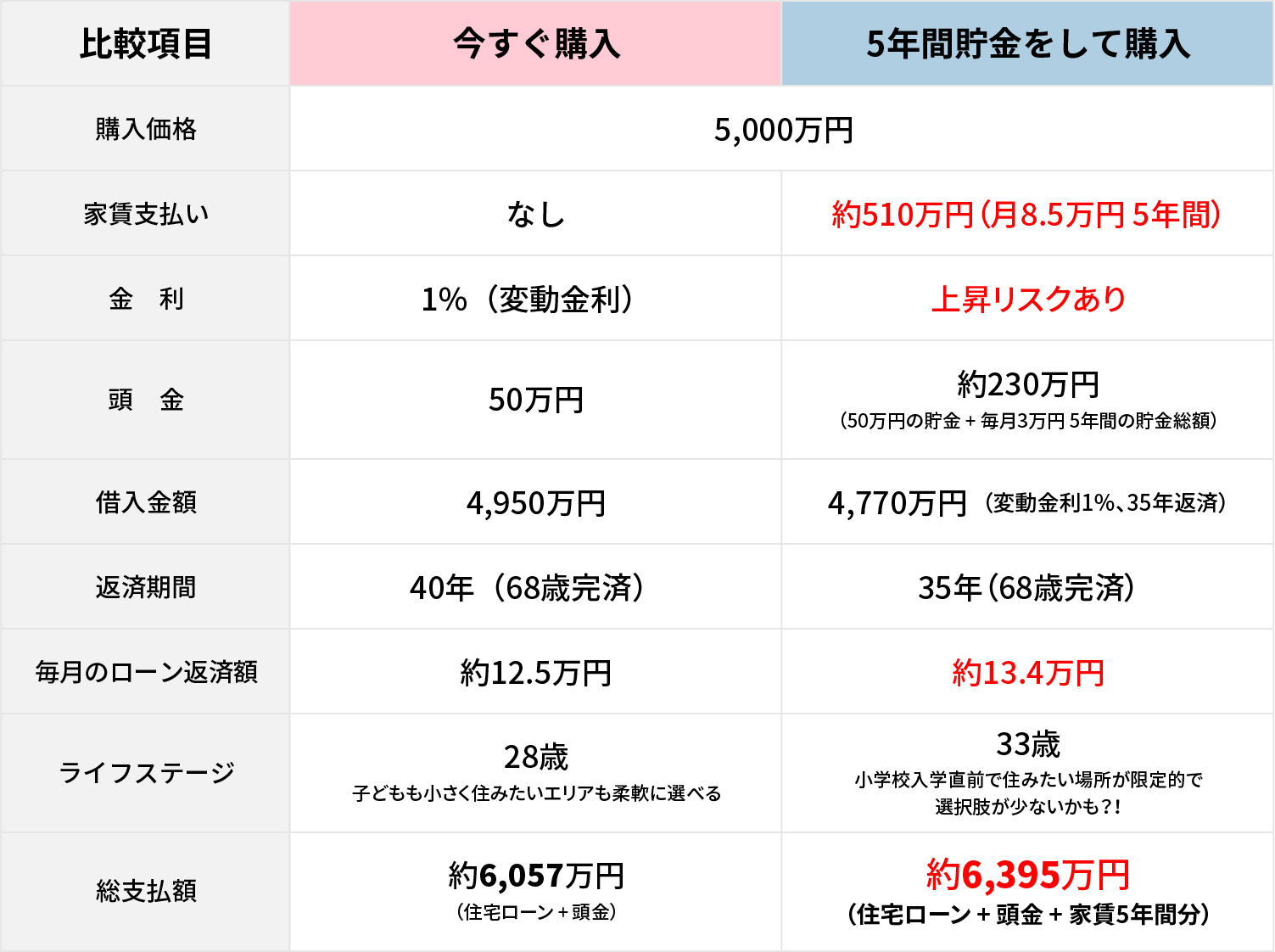 【5年後に購入するするメリット・デメリット】