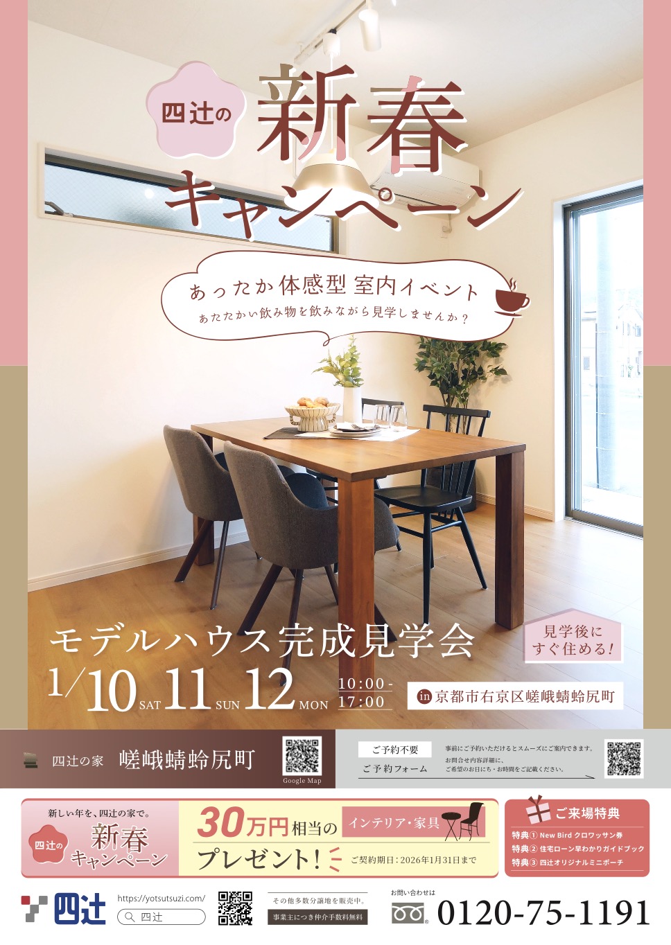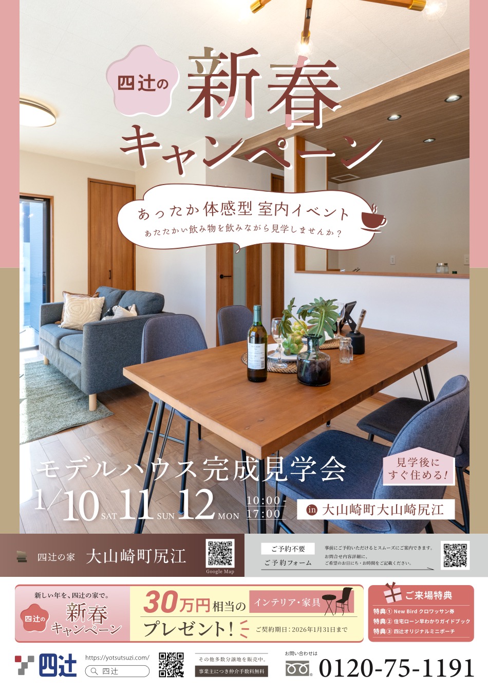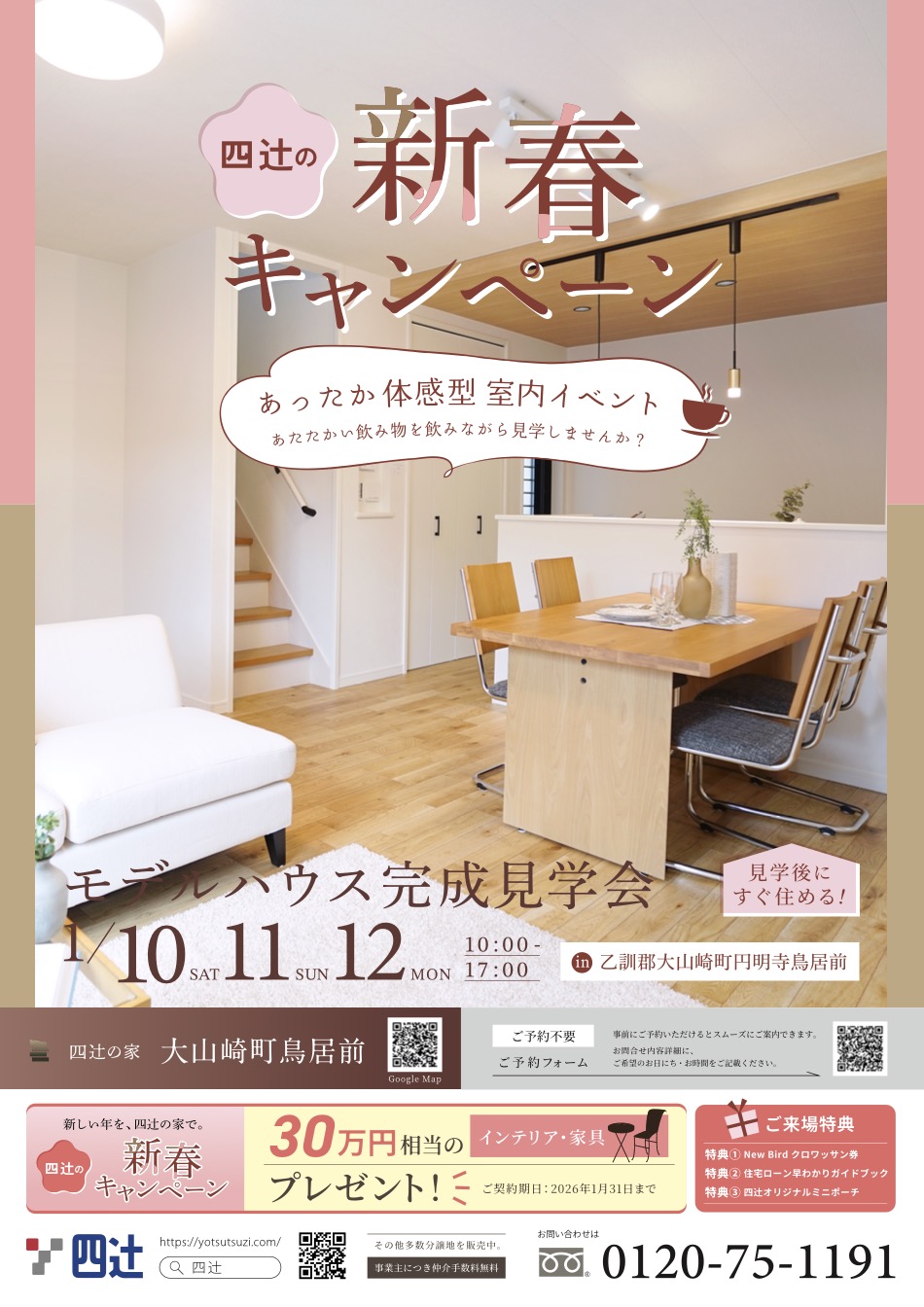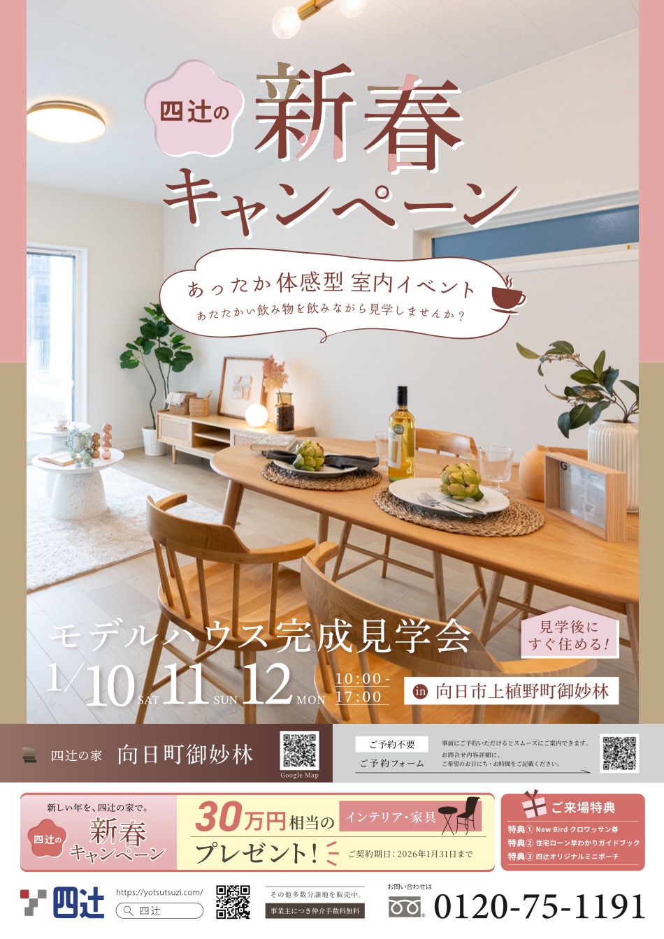 2026年1月のご契約でインテリア・家具30万円分プレゼント! 「四辻の家」各分譲地モデルハウスで