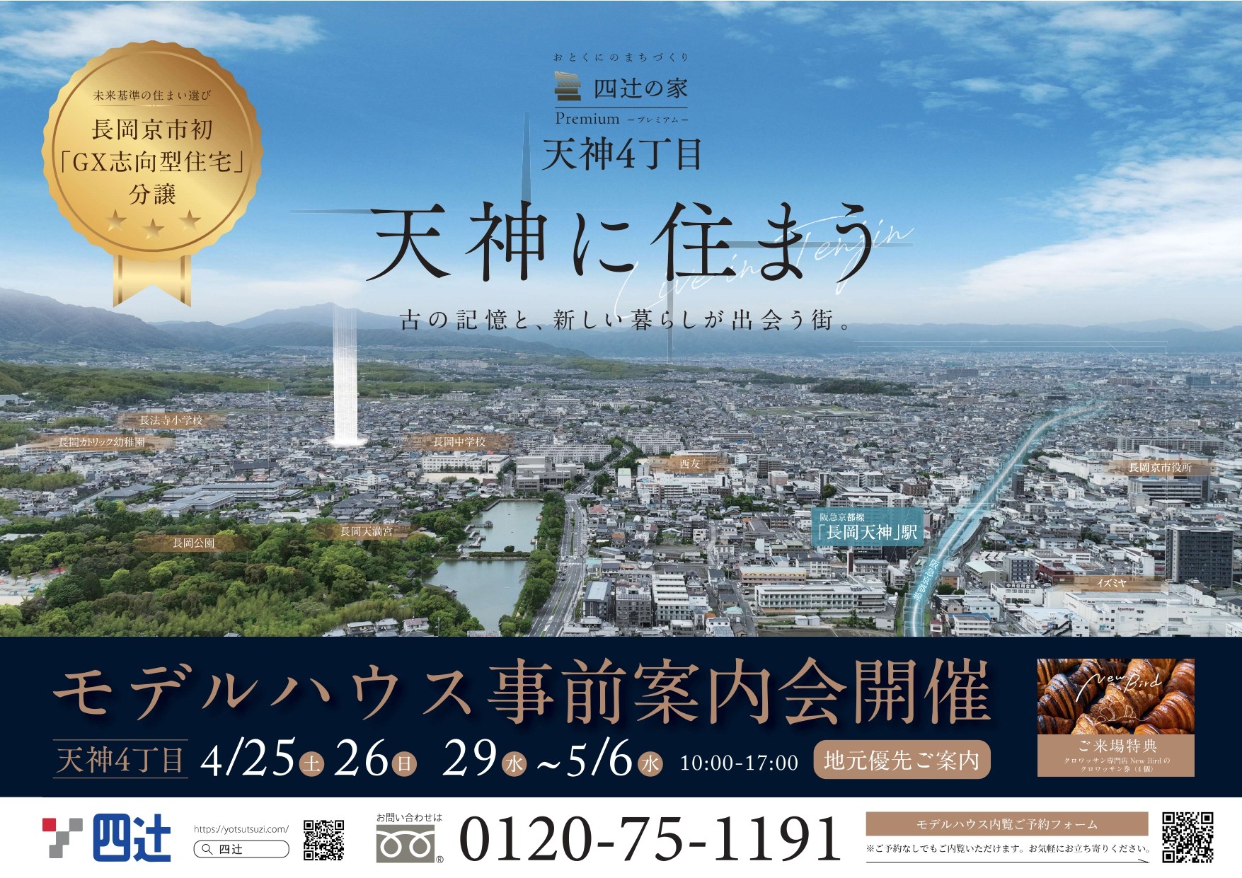 【四辻の家 天神四丁目】モデルハウス事前案内会開催! このたび、新規分譲地「長岡京天神四丁目」にてモデルハウスが完成いたしました。