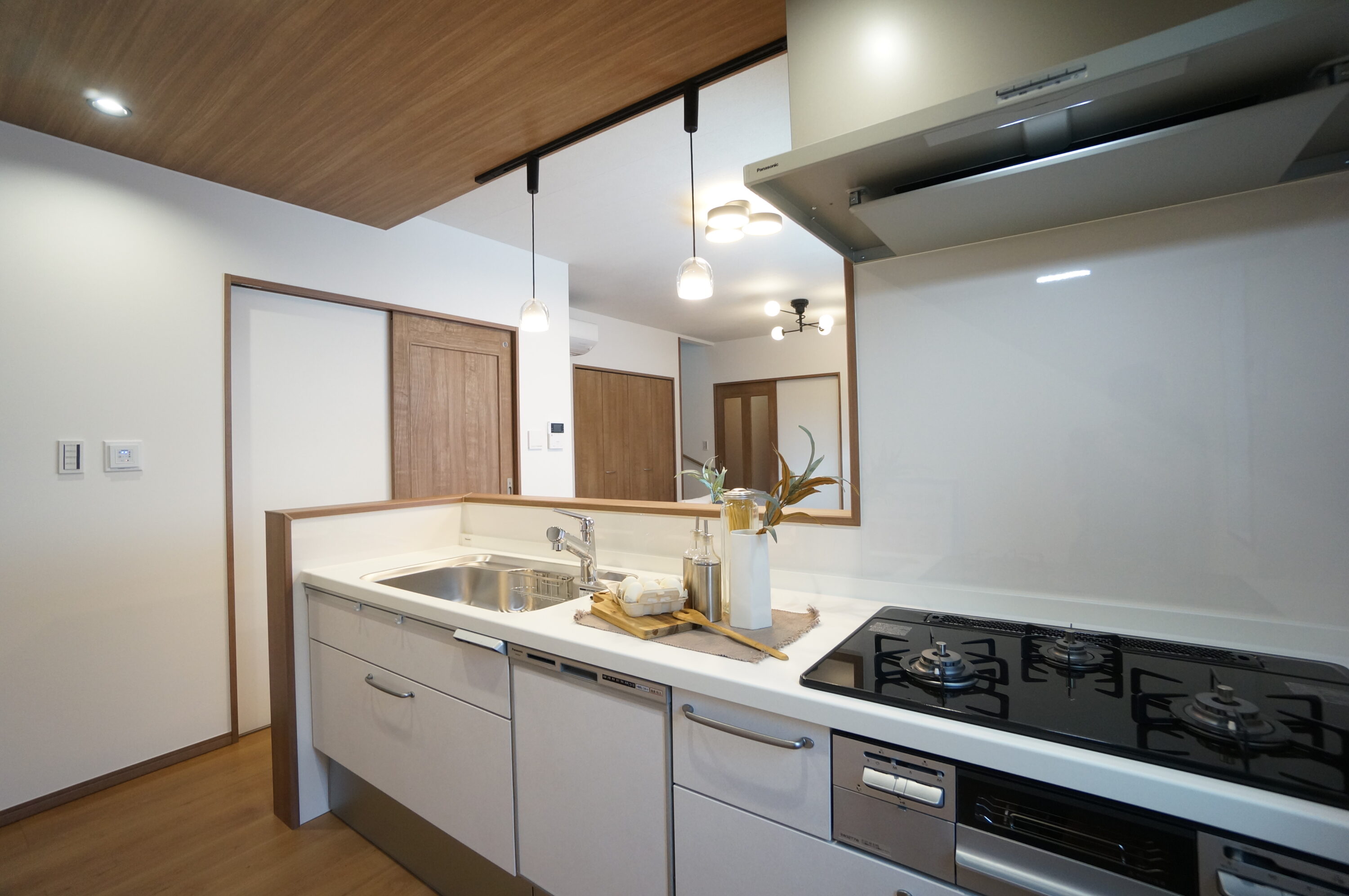 対面キッチンを採用し、調理中でも家族や友人との会話を楽しむことができ、オープンなデザインが空間を広く感じさせます。