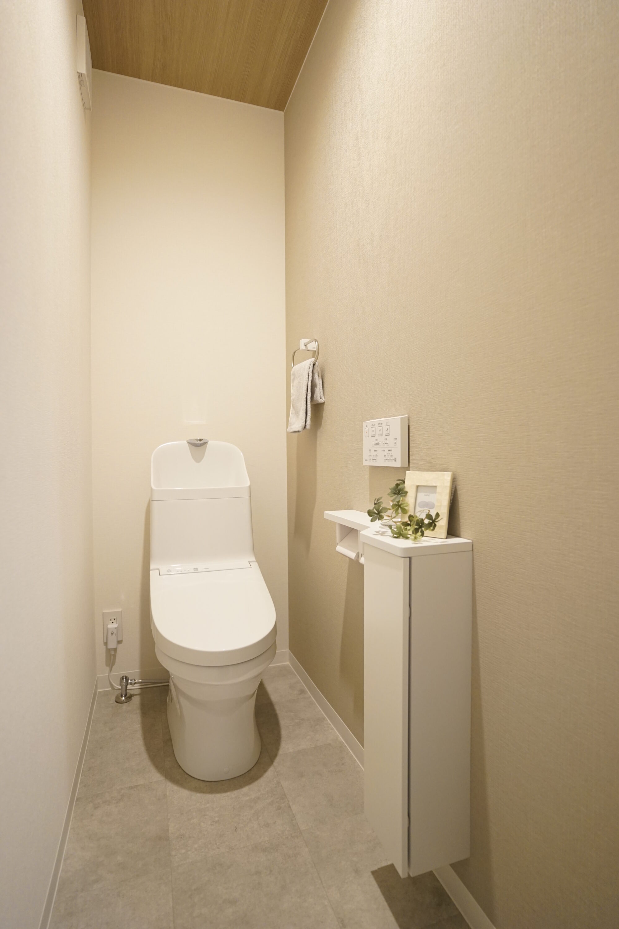 グリーンのクロスが爽やかな印象のトイレは、心地よいリラックス空間を演出しております。